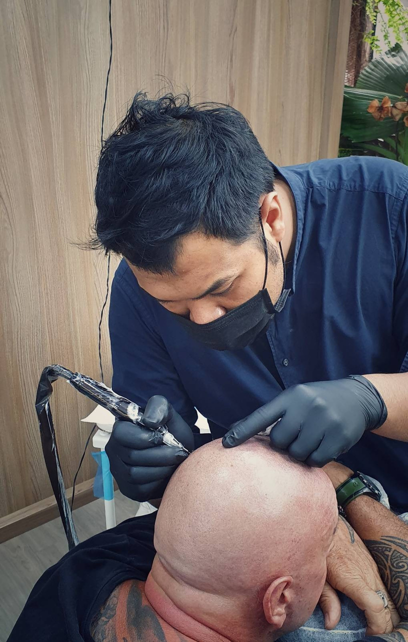 ตั้ม ธนาคม ผู้เชียวชาญด้านการสักสกินเฮด และ โปรเฟสชั่นนอล ด้านการสักปกปิดแผลเป็นจากการปลูกผม